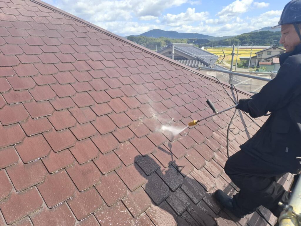 ・屋根全体の汚れを高圧洗浄で除去してきれいにしていきます。