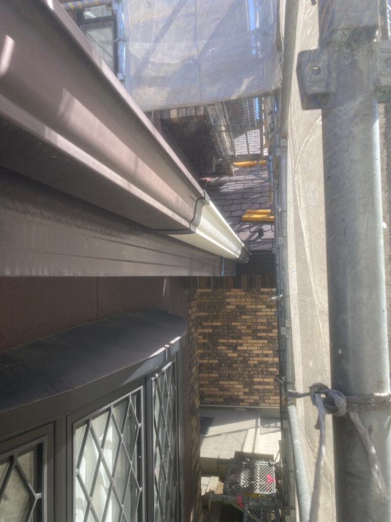 雨樋の一部で歪みがございましたので撤去し、新しい部材を取り付けて再度塗装し直しました。検査時に密着不良・硬化不良等の施工不良はございませんでした。(下写真2枚)