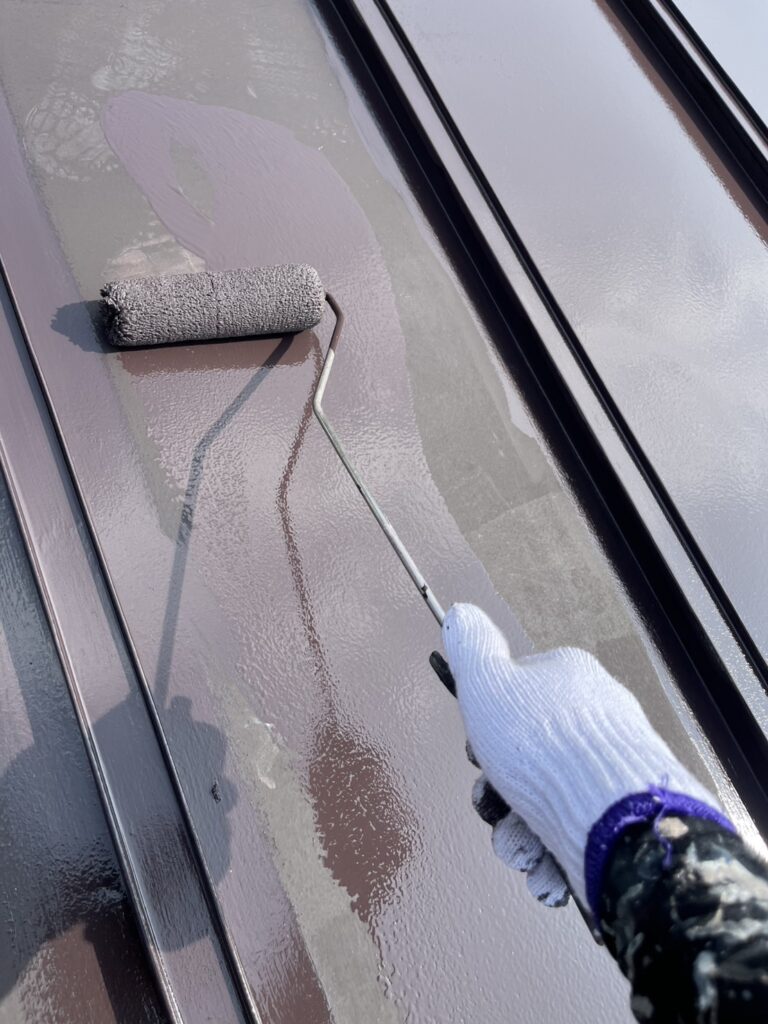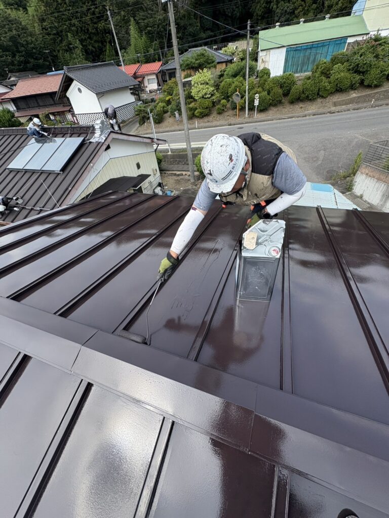母屋屋根中塗り作業になります❕